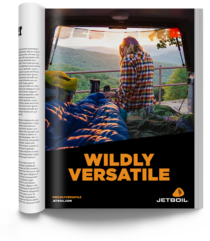 To address all these asks, we created a brand narrative built around three messaging components: "Boiling is Just the Beginning," which communicated versatility of use; "We Go," which promoted versatility of activities; and "Obsessively Engineered," which highlighted Jetboil's unrivaled engineering. These three sub-narratives were then united under an overarching master narrative: “Wildly Versatile.”